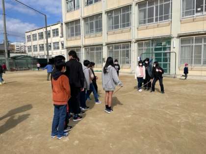 ぽかぽか陽気の中、みんなで楽しく大縄をしました!