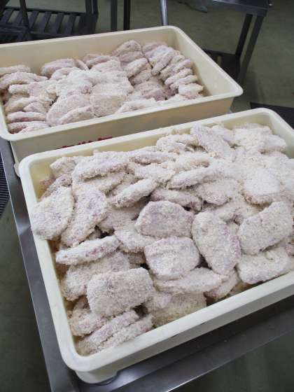 給食室では、調理員さんが800枚の豚肉に一まずつ衣をつけて、カリッとジューシーに揚げてくださいました。手作りの甘酸っぱいソースもよく合いましたね。