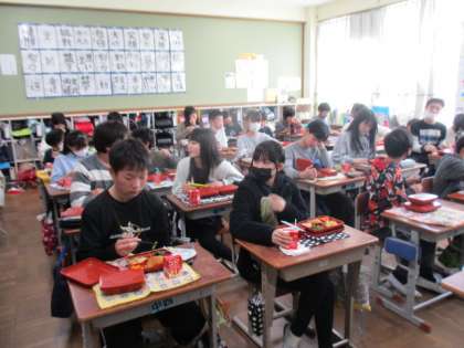 どんな味かどきどきしながら食べていました。野菜たっぷりでおいしい給食でした。