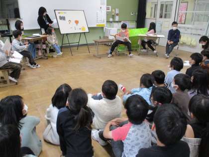 2つのパネルシアターを見せてもらいました。2つのお話がすてきで、子どもたちは、とても楽しそうにみていました。