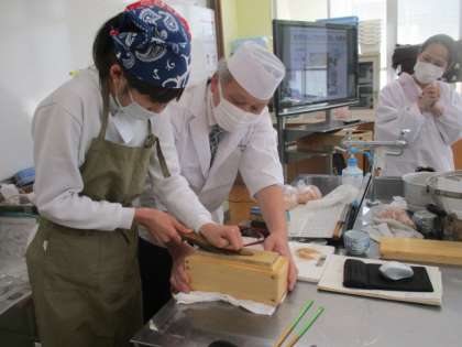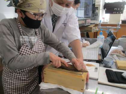 実際にかつお節を削る体験をしました。(全員は時間的に無理だったので、また機会があれば…)