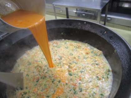 いつ卵を釜に投入するか、卵を投入する時の速さ、火加減、混ぜるタイミングなどを細かく状況を見極めて調理してくださっています。