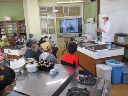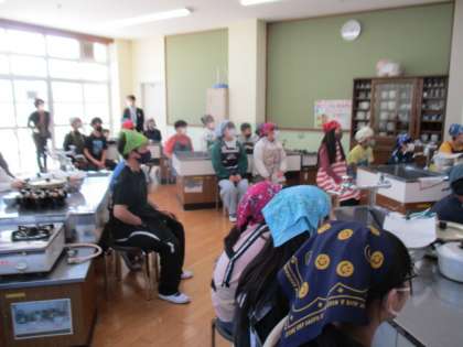 京料理松廣の北倉さんに来ていただき、出汁の授業をしていただきました。まずは、昆布やかつお節の話を詳しく教えていただきました。