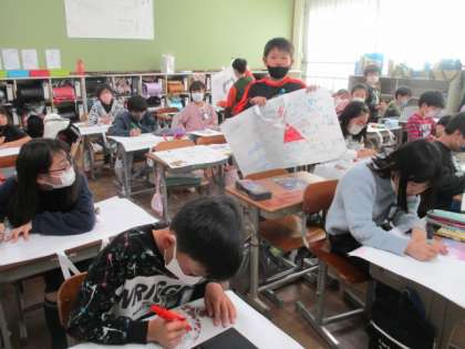 1年間に描いた図画工作の絵や、書写の作品などを持ち帰ります。
