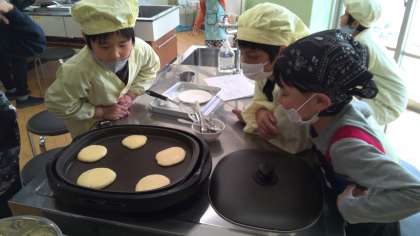 今回は生地をホットプレートに流し込むのも自分たちで挑戦!