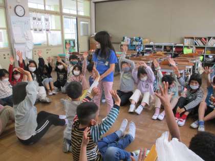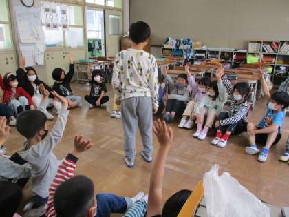 クラスで最後の遊びを楽しんでいます。しんげんちと貨物列車です。
