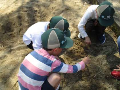 遊具遊びが落ち着いた頃から、砂場遊びや敷地内の散策が始まりました!