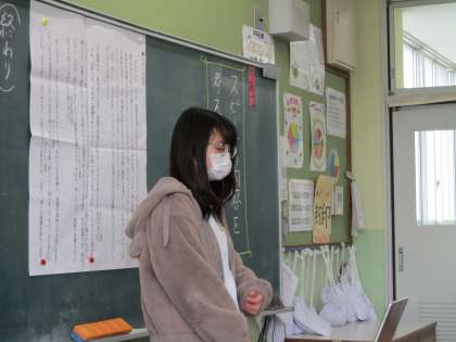 話し言葉で原稿を書き,みんなの前で「スピーチ」しました。