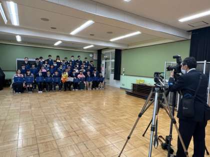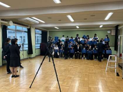 多目的室で、小学校生活最後となる“クラス写真”を撮影しました。みんな笑顔でとってもいい表情をしていました!