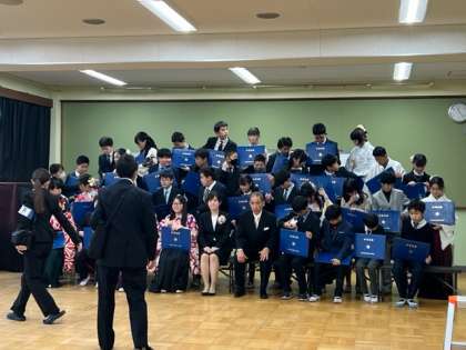 3月23日(木)「令和4年度 卒業証書授与式」多目的室で、最後のクラス写真・・・。