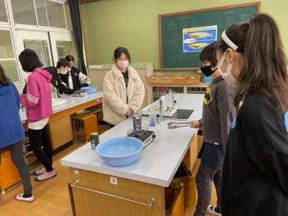 水の中に缶を入れると大きな音をたてて缶がつぶれました!!びっくり!!