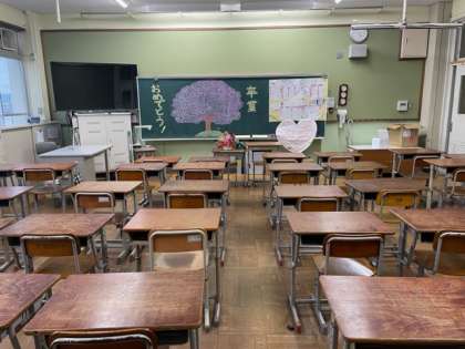 卒業式後の教室です。すっきりとした教室を見ると、本当に卒業したんだなあと寂しい気持ちになってきました。