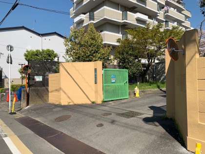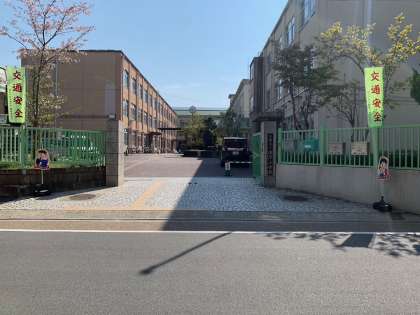 南門の左右にカーブミラー、南門と正門に飛び出し注意の看板を設置しました。児童の登下校が、より安全になることを願っています。