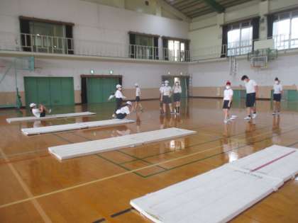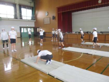 6年 体育 マット運動を頑張っています!