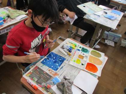 6年 図画工作 絵具を使って空を描こう!!