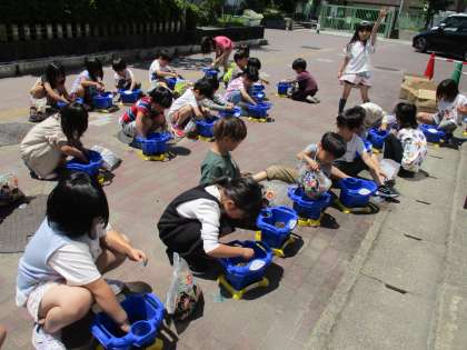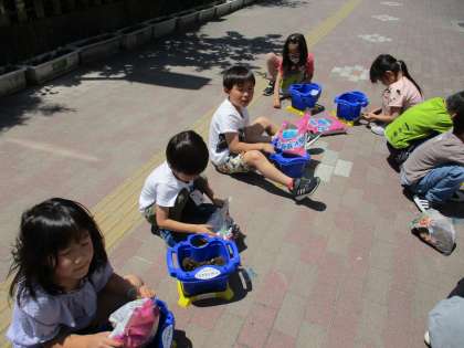 あさがおの種をまきました。自分で土から準備して種をまき、土を優しくかぶせていました。きれいな花が咲くのが楽しみですね!