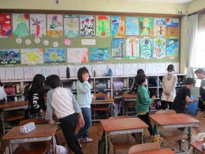 給食後、時間がない中で、子どもたちは声を掛け合って掃除を頑張っていました。