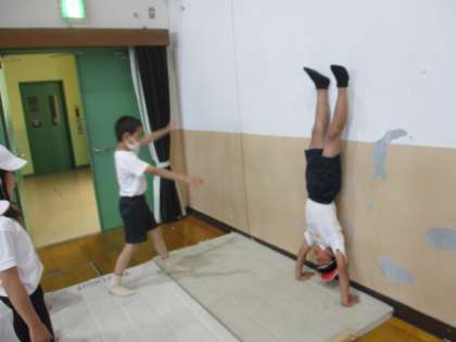 友達にアドバイスをもらって、壁倒立に挑戦!!!