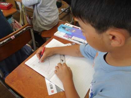 1つのグラフに2つの事柄を表すグラフの書き方や読み取り方も学習しています。