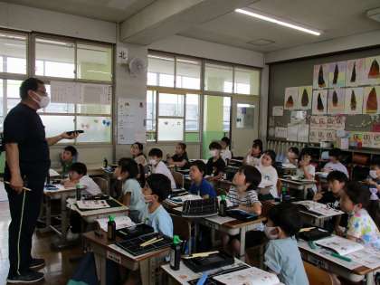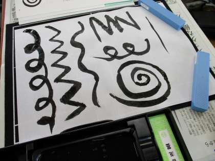 初めての授業では、習字セットの使い方や、準備・片付けのやり方を学習し、実際に線を書いてみました。