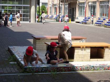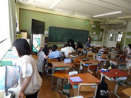 中間休み、運動場で遊ぶ子どもたちは多いですが、休み時間の過ごし方はいろいろです。中庭で遊んだり教室でのんびり過ごしたり・・・図書館で本を読んだりかりたりする児童も多いです。