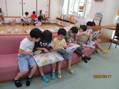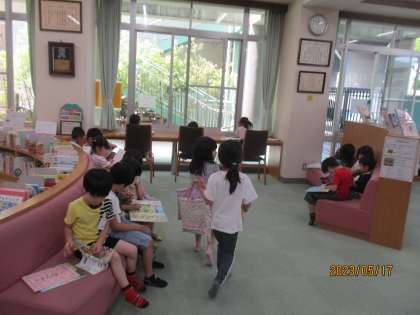 毎週木曜は図書館で本を読む学習をしています。図書館での本の借り方・返し方を確認しながら,上手に貸し借りできる子が増えてきています。借りた後は,みんな楽しそうに本の世界に浸っています。