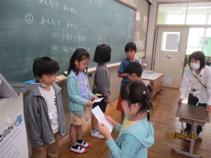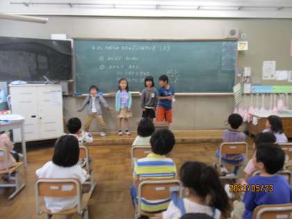 4月・5月のお誕生日会をしました。まず初めに4月・5月のお友達に誕生日ソングを歌ったり,誕生日カードを渡したりしてお祝いをしました。