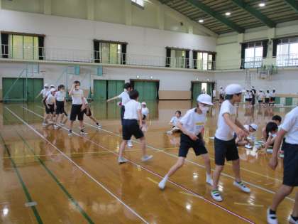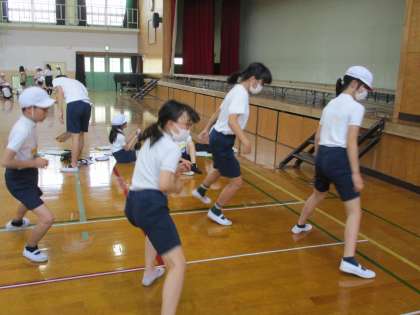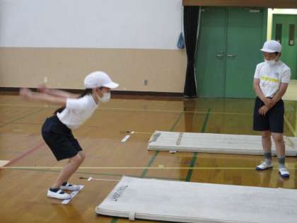 反復横跳び・立ち幅跳び・ソフトボール投げ・長座体前屈を行いました。皆,去年の記録より良くなっていて大喜びでした。