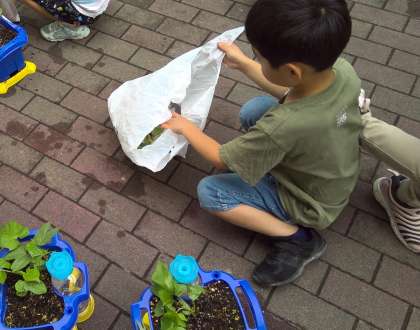 今日は、おうちに持ち帰るものと学校で育てるものに分けました。