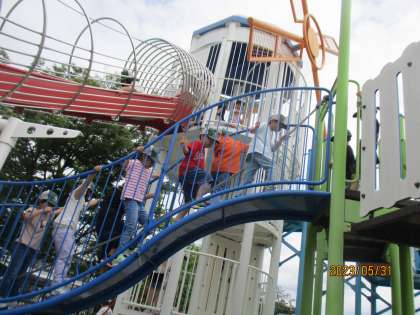 緑の広場には魅力的な遊具がいっぱい!みんな嬉しそうに遊具遊びを楽しみました。