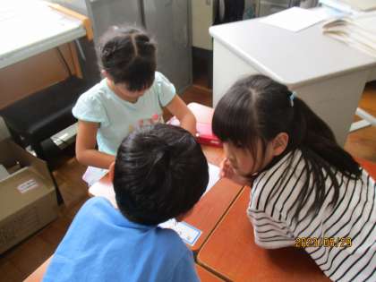 生活科で「なかよしいっぱいだいさくせん」という学習をしています。学校で仕事をしておられる先生と「どうやったら仲良くなれるかな」「こんなことをお話してみたいな」ということをグループで考えました。