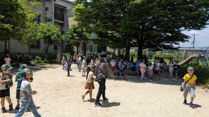 深草商店街や京都医療センター,深草中学校などを通って,まちたんけんを行いました。