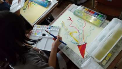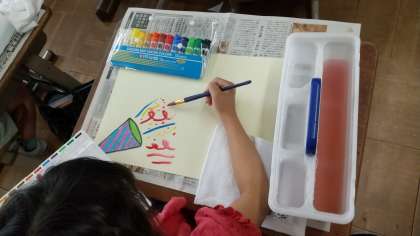 はじめて絵の具を使っての学習をしました。