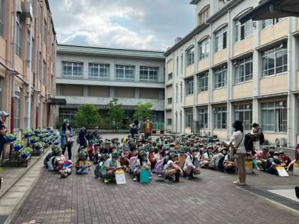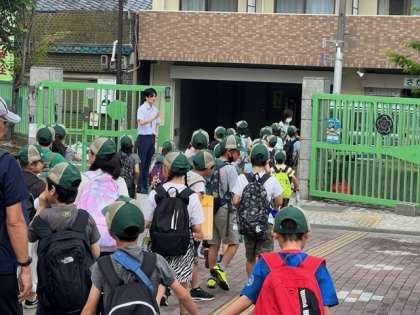 校外学習に出かけるときも、みんな「校帽」をかぶっているので、深草小の児童だということがよくわかりますね。みんな、よく似合っていますよ。