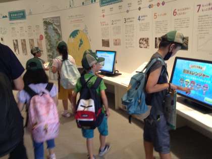 校外学習で、「将軍塚」へ行った後、「琵琶湖博物館」へ行きました。「琵琶湖博物館クイズラリー」をしながら館内を見学しました。中には難しいクイズもありましたが、みんなで協力し合っていました。最後は、琵琶湖を背景に広場でお弁当を食べて帰ってきました。