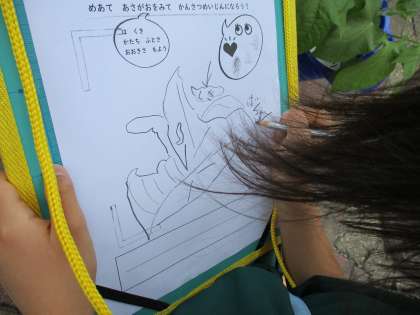 朝顔の観察をしました。葉っぱの形や触った感じなどよく見て絵や文でかけました!