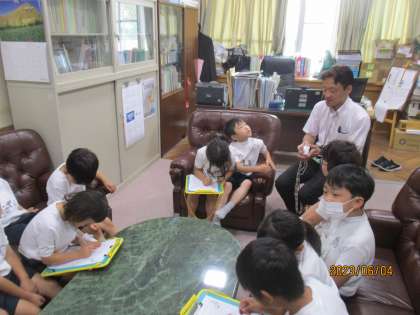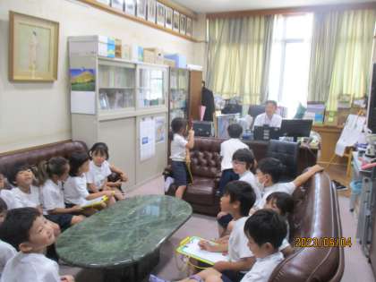 生活科の「なかよしいっぱいだいさくせん」で,学校で働いておられる職員の方にインタビューをしました。この日は校長先生にインタビューをして,「どんなお仕事をしているんですか?」「1番頑張っている仕事は何ですか?」と興味津々にお話をしていました。