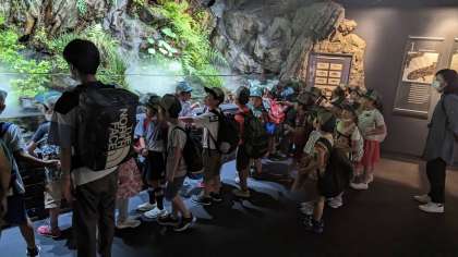 オオサンショウウオの大きさに目を丸くして、「僕より大きい!」と驚きの声を上げていました。
