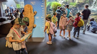 ゆっくり動くオオサンショウウオを見て、じっくり観察できたようです。