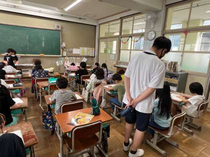 今日は、「生き方探究・チャレンジ体験」の3日目、最終日です。学校で働くという活動にも少し慣れてきたように感じます。小学生のみんなも、中学生のお兄さんお姉さんが教室に来てくれることを、とても楽しみにしていました。