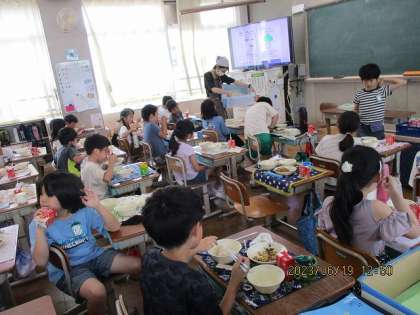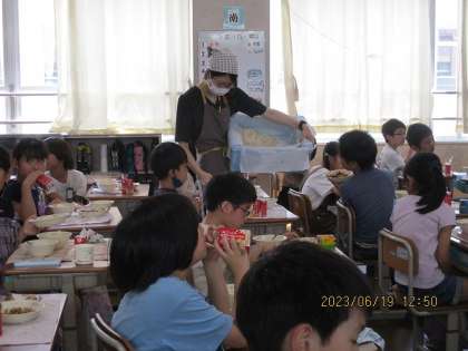しっかりと三つの働きを教えてもらった後は、一緒に給食をいただきました。残さずしっかりと食べようと声かけしてもらい、頑張って食べようとする子たちが多いです。