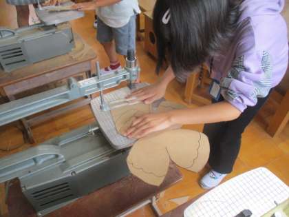 自分の描いたイラストの輪郭に沿って板を切っていきます。