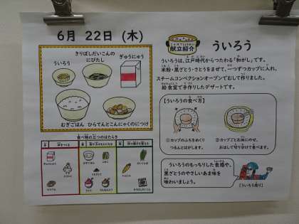 6月22日(木)給食 今日の給食献立に、「ういろう」が初登場!!!