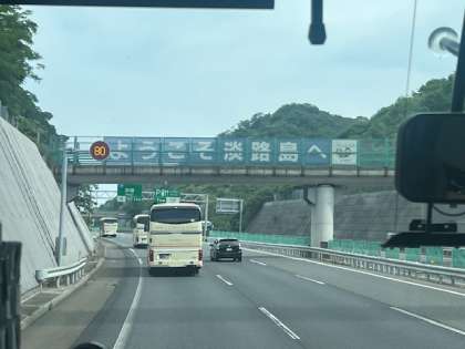 6年生のみんなはとても元気です。バスも順調に走っています。明石海峡大橋を通って淡路島へ!淡路SAでトイレ休憩です。