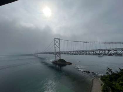 退所式をしている間に太陽が顔を出し始め、だんだんと霧もなくなってきました。朝はあたり一面の霧で、景色は何も見えなかったのですが、霧が晴れて、大鳴門橋も姿を表してきました。