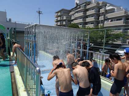 朝から日差しが強く、暑い一日となりそうですが、水泳学習の時間のある学年は、今日のプールは気持ちよく入れそうですね。
