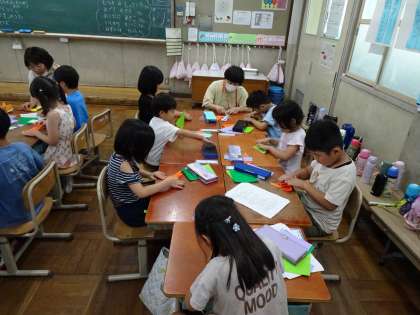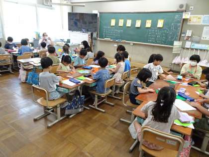 7月4日(火)3・4校時 1年・生活科「なかよし会のみなさんと七夕かざりをつくろう!」