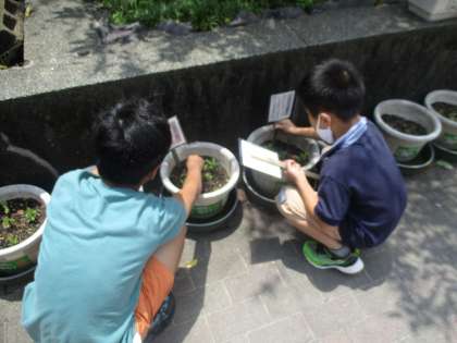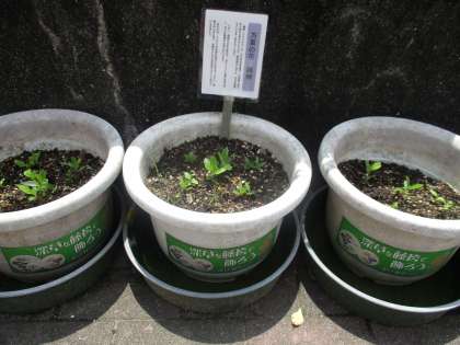 藤袴の挿し木をした鉢に、札を立てました。札は、地域の方にいただきました。暑い中、時間を見つけて自分の鉢に札を立てました。