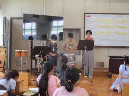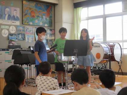 手拍子で練習をした後、楽器で練習をし、発表をしました。