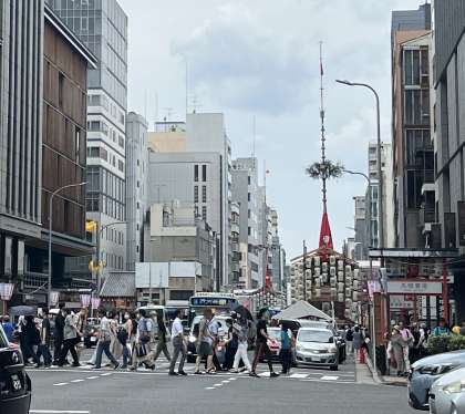 京都の7月と言えば・・・日本三大祭りの一つ「祇園祭」です。今日14日(金)〜16日(日)は、前祭(さきまつり)の宵山期間となります。17日(祝・月)は、山鉾巡行の日です。四条通付近には、山鉾が立ち並び、大勢の観光客でにぎわっています。
